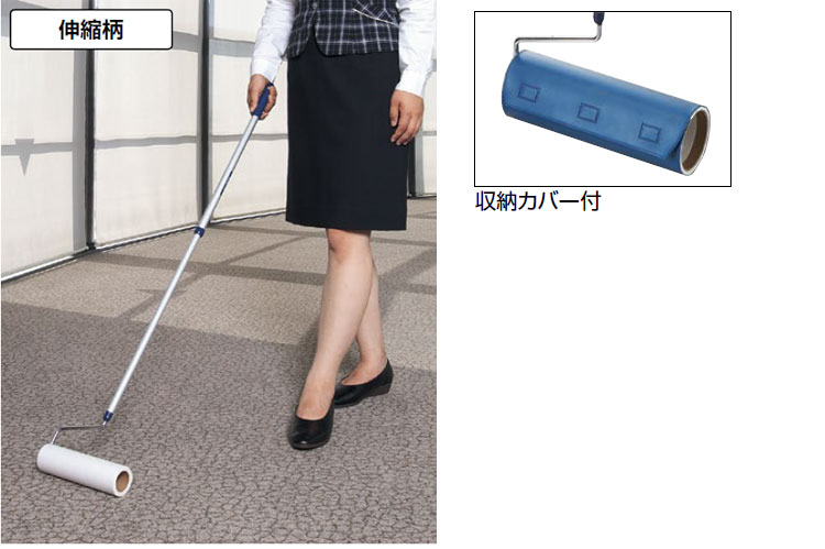ローラーを転がして糸クズやホコリをしっかりキャッチ。カーペットや布製ソファーなどに最適です。テープを取り替えて、何度でも使用可能です。また、長さが調整出来る便利な伸縮タイプです。