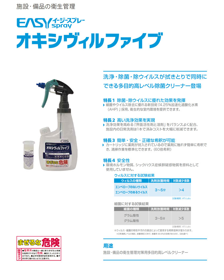 洗浄・除菌・除ウイルスが拭きとりで同時にできる多目的高レベル除菌クリーナー。