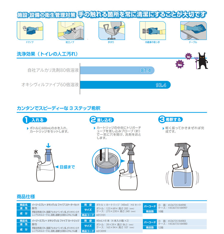 シーバイエス(ディバーシー) 除菌剤 イージースプレーオキシヴィルファイブカートリッジ(4本×2)