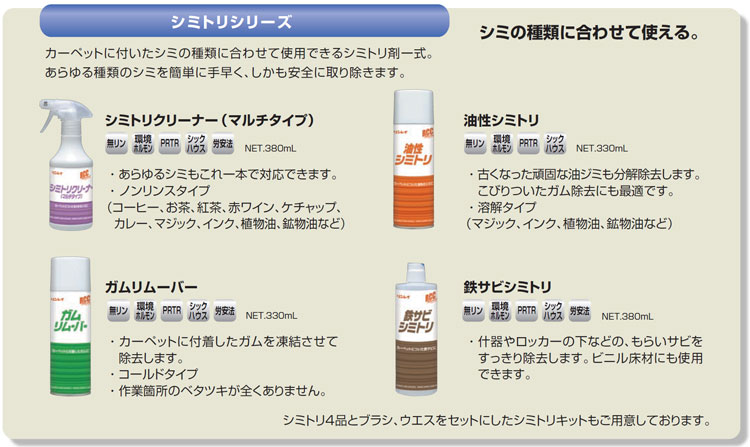 頑固な油ジミを分解除去、こびりついたガムも溶解除去します。