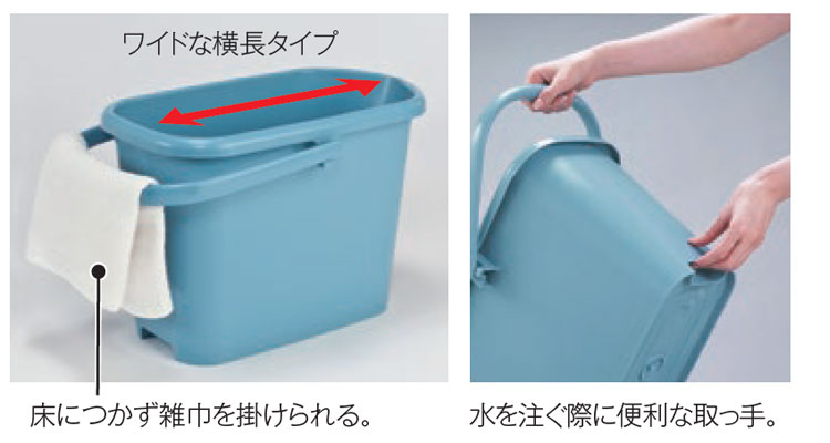 30cm幅のモップもそのままつけ洗いできるワイドバケツ