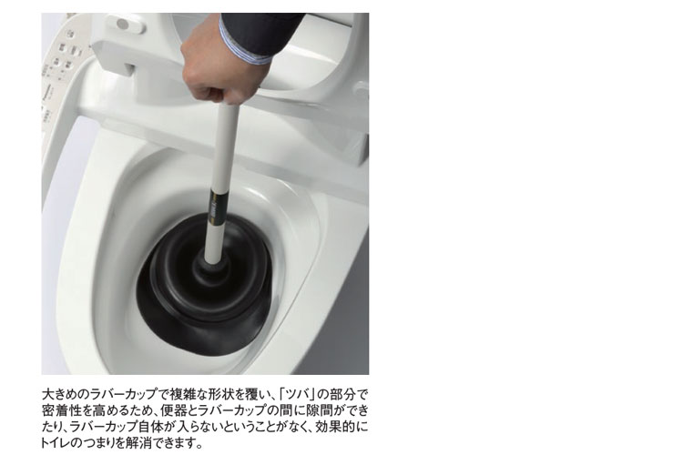 従来のラバーカップにない「ツバ」付で、形の複雑な節水型便器にしっかりフィット。