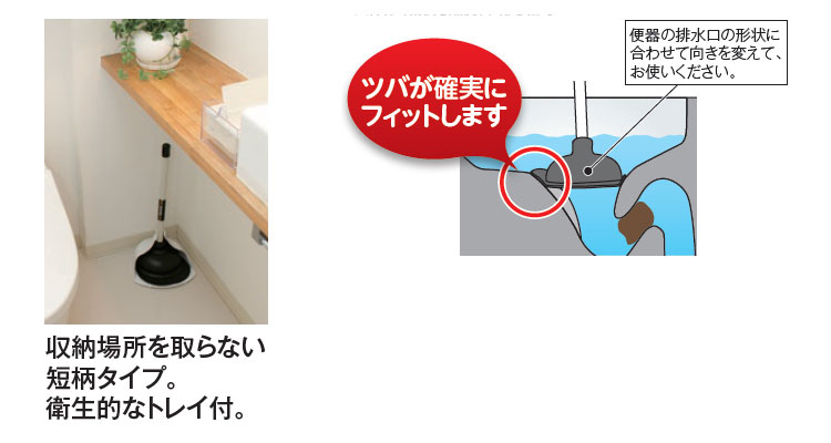 従来のラバーカップにはない「ツバ」付で、形の複雑な節水型便器にしっかりフィット。