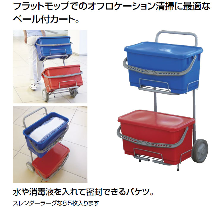 フラットモップでのオフロケーション清掃に最適なペール付カート