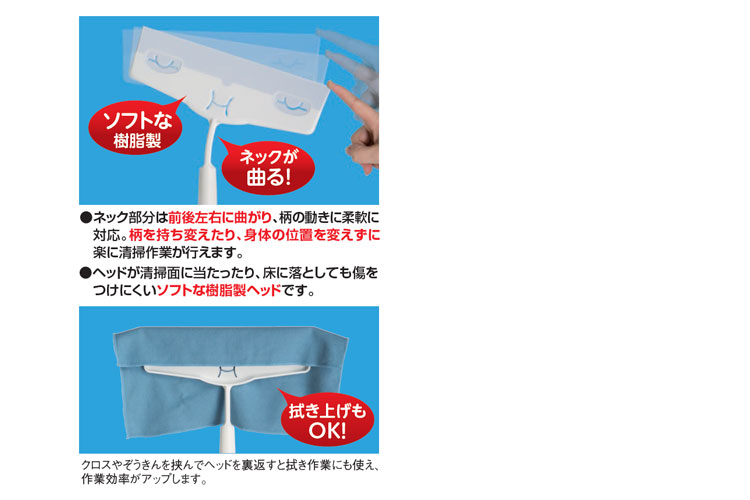 「曲がる」樹脂製ネックがスムーズで快適な使用感を実現する水切りワイパーです