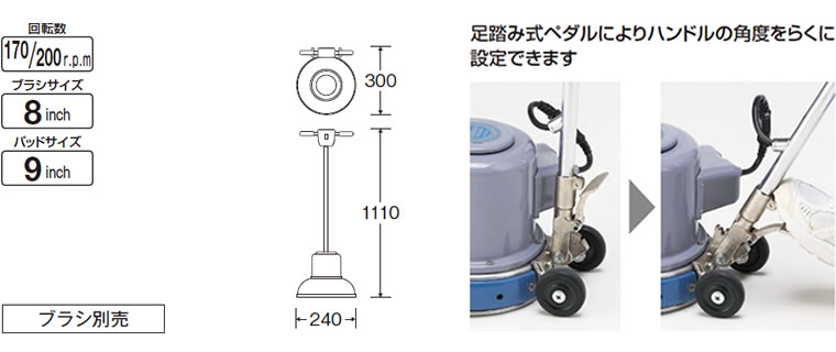 パッド幅9インチ(約230mm)ブラシ幅8インチ(約200mm)