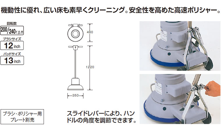 商店・事務所・学校・ホテル・工場などの床面のワックス剥離、洗浄、磨きに最適な高速ポリッシャー。