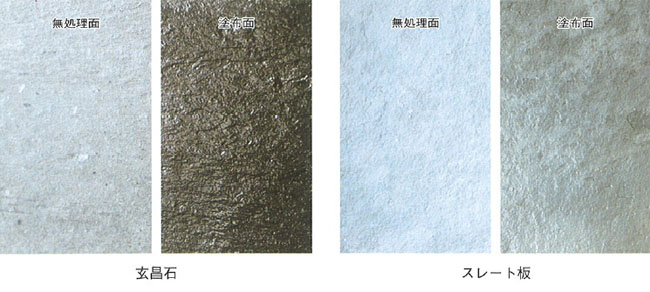 玄昌石等のストレート(粘板岩)に「アイバリア」を塗布することにより擦り傷や汚染の防止とともに光沢のある色相の深み(濡れ色)がいっそう石材を際立たすことができます。