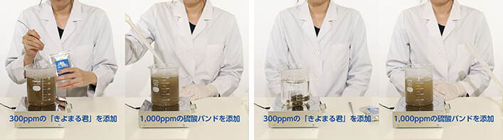 凝集までのスピードは圧倒的です。また、他の凝集剤では対応しきれない、微細な懸濁物も 凝集可能です。