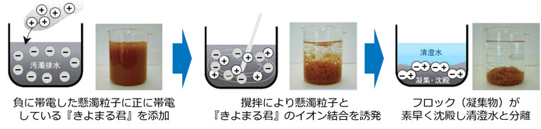 これまでの凝集剤では処理しきれなかった、微細な懸濁物も処理できるとして、環境に配慮される数多くのお客さまより支持されています。