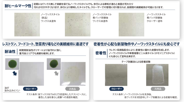新開発耐油性ポリマーにより油汚れに強く、重汚染エリアでも美観を維持します。