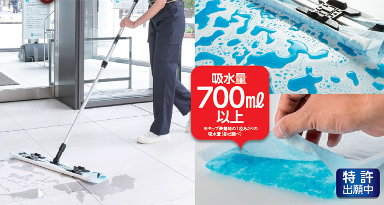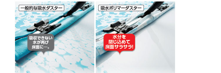 吸水ポリマーが床面の水分を吸収し閉じ込め床面サラサラ。とっさの雨による床面のスリップ事故にいち早く対応でき、歩行者の安全を守ります。