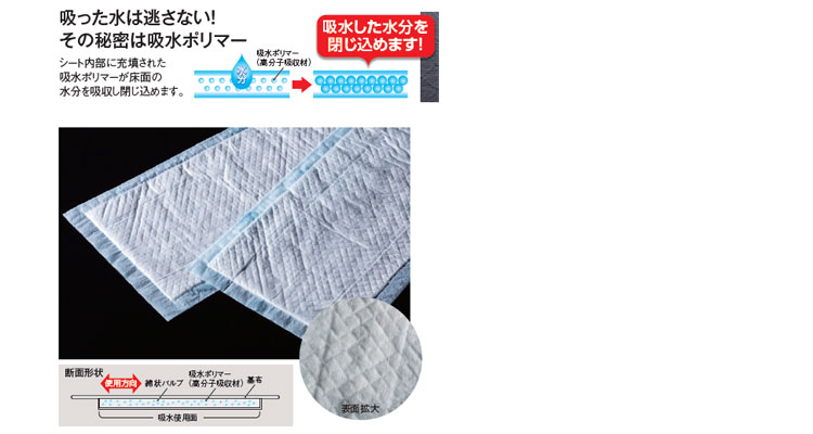 材質:表面(吸水面):ポリプロピレン、吸水層:吸水ポリマーシート