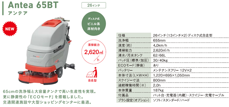 リンレイ 床洗浄機 Antea65BT(アンテア65BT)