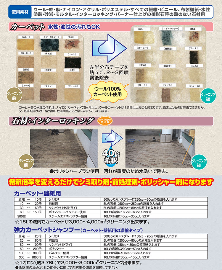 全てのカテゴリ 樹脂ケミカル類 コーティング剤 木床ワックス類 石材類 剥離剤 洗浄剤 ガラス ワックス関連用具 ポリッシャー 清掃マシン・資機材 清掃用具 オフィス・施設用品 全てのサブカテゴリ 床用洗浄剤 石用・コンクリート用洗剤 カーペット洗剤 木材用洗剤 ガラス用洗剤 エアコン用洗剤 浴室用洗剤 外壁・内壁用洗剤 セラミックタイル洗浄剤 トイレ用洗剤 厨房・油汚れ用洗剤 漂白剤 環境対応洗剤 除菌洗浄剤 アルコール除菌剤 特殊洗剤(ステン・金属など) 鉱物油用洗剤 洗濯洗剤 滑り止め溶剤 尿石除去剤・尿石防止剤 全てのメーカー 旭化成ホームプロダクツ アドバンスジャパン アプソン アマノ アマノ武蔵 アムテック アルボース 泉製紙 允・セサミ e-サービスエクスプレス ウォーターレス社 ウルトラフロアケアジャパン ウンガー エコソフィ エステートレーディング エトレー エムアイオージャパン M.I.T 大阪セーフティ おそうじは化学 オリジナル オンザロード オーブ・テック 花王 キクロン キョーワ クオリティ クリアライト工業 クリストン GLIP ケルヒャー コニシ 紺商 コーワ 早乙女 サラヤ 三和研磨工業 蔵王産業 四国化成 G&Yuバッテリー スイショウ ステコーン スパルタンケミカル スマート 3M スリップアウト セイワ 積水テクノ商事 ソニカル タカギ タケヤ刷子工業 タフリーインターナショナル 大王製紙 ダンロップ 角田ブラシ テナント テラモト テンパール シーバイエス(ディバーシー) 東和コーポレーション 土牛産業 ナルビー ニイタカ 日産化学工業 日進ゴム 日本カノマックス 日本クランツレ 日本ケミカル工業 日本サニパック ニュマティック ネイチャーログ ノリタケコーテッドアブレーシブ HIKOKI 早川工業 阪和 バイリーンクリエイト パシカ 日立 ビアンコジャパン ピカコーポレイション ピューレックス フォンシュレーダージャパン フォーミュラー 富士メンテニール フッソロン ブッチャー 文化雑巾 プーキートレーディング BETCO(ベトコ) ペンギン ホリバ BOSCH マキタ マルヤマエクセル 万立 ミッケル化学 ミヤキ モアマン 山崎産業 ユシロ 豊興業 ユーホーニイタカ 横浜油脂工業 好川産業 ヨシノ産業 ラバーメイド リバース リンレイ レッツクリエイト 和協産業 ヴェルテックス NCA S.M.S.Japan TOSHO(コスケム) TOWA