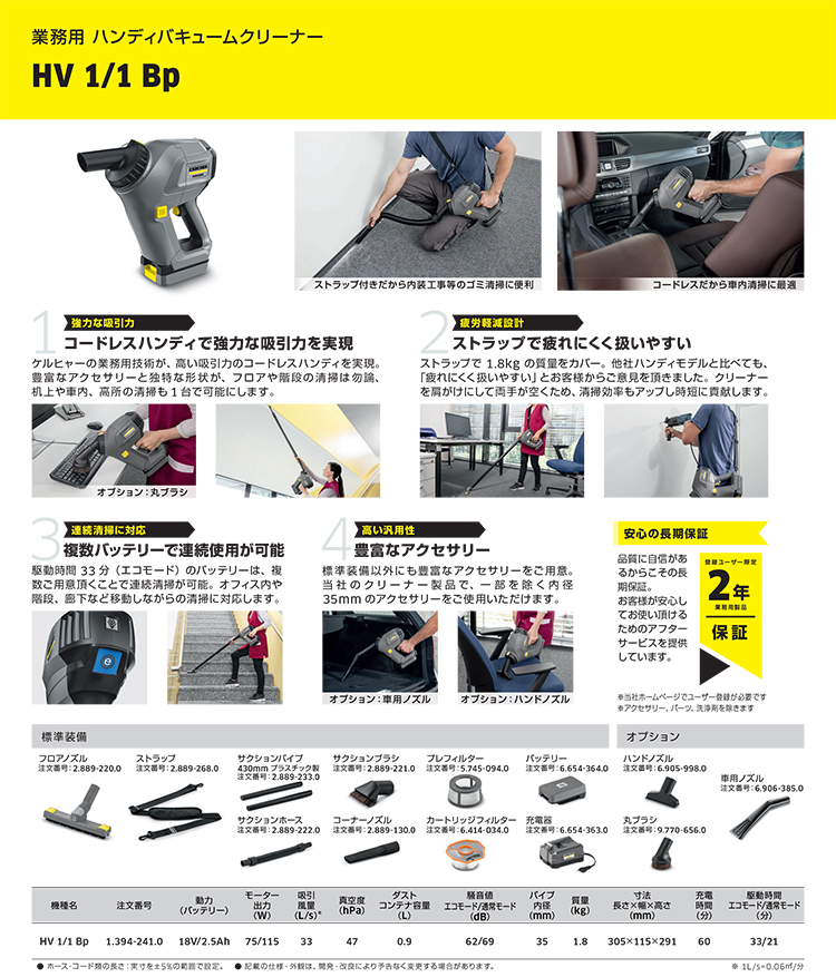 豊富なアクセサリーが高い汎用性を与え、効率の良い清掃を可能にします。