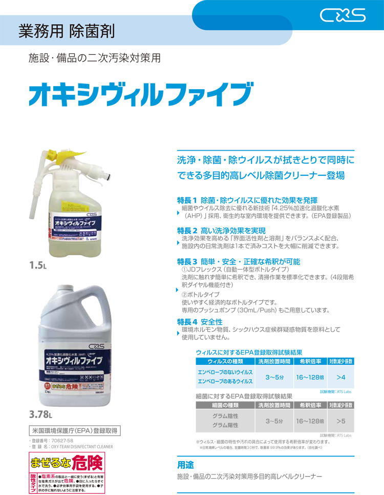 シーバイエス(ディバーシー) 除菌剤 オキシヴィルファイブ 3.78L