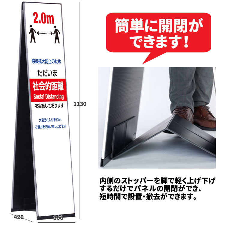 テラモト 感染対策パネル ミセル 折りたたみ屋内看板縦(社会的距離)