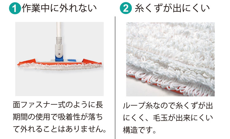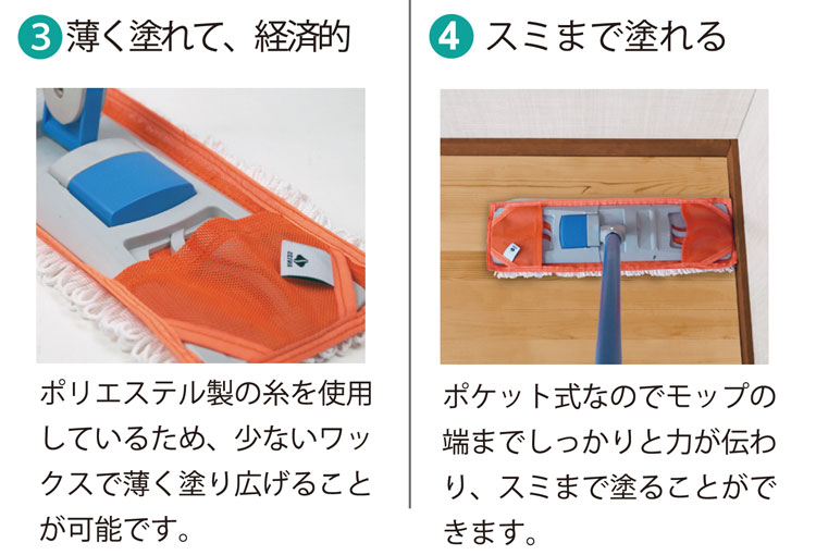 作業中に外れないポケット式のワックスモップ