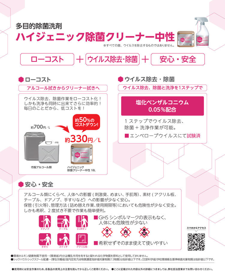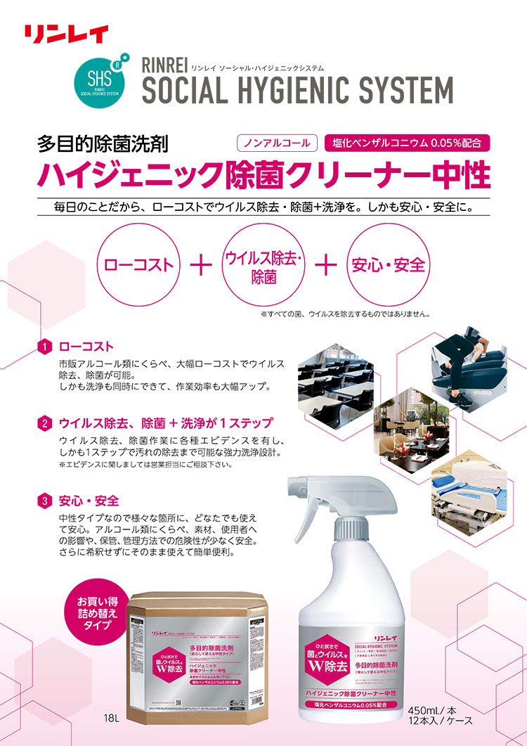 (塩化ベンザルコニウム0.05%配合)毎日のことだから、ローコストでウイルス除去・除菌+洗浄を。