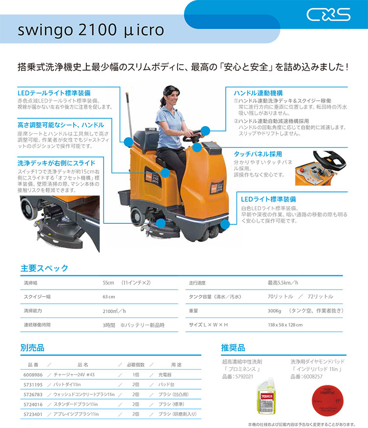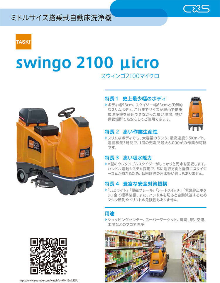 シーバイエス(ディバーシー) 自動床洗浄機 TASKI スウィンゴ2100マイクロ