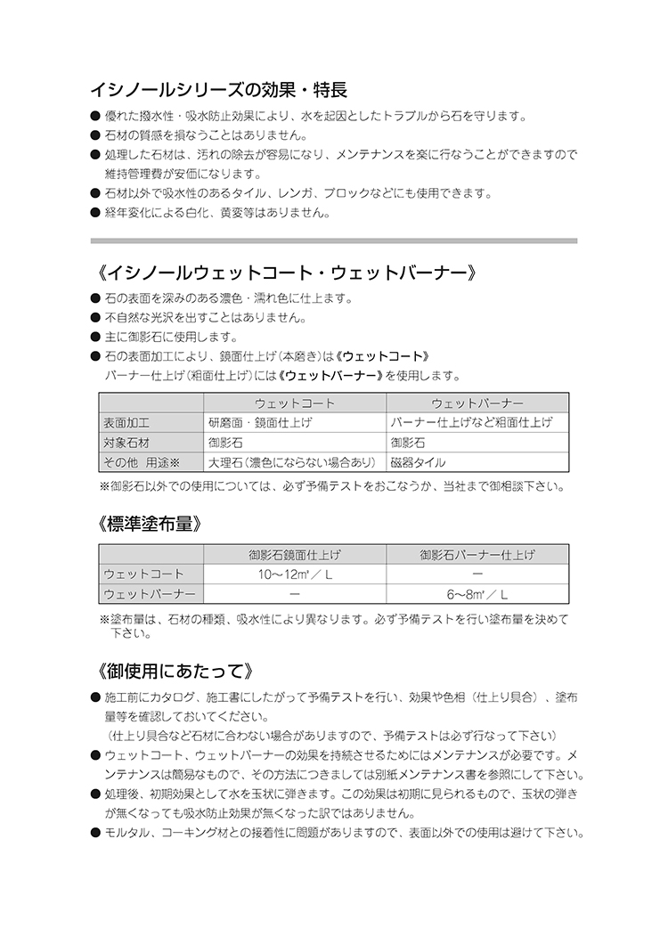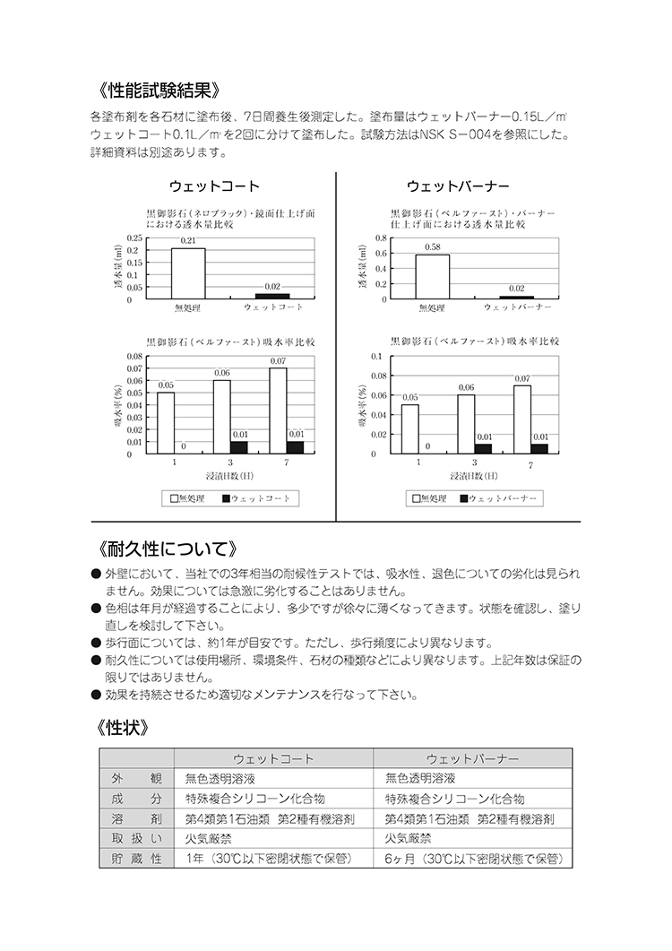 御影石鏡面仕上げ専用吸水防止剤
