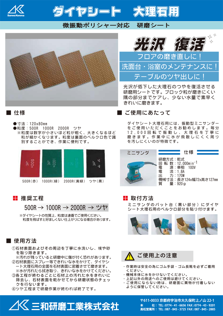 光沢が低下した大理石や御影石のつやを復活させる研磨用シートです。