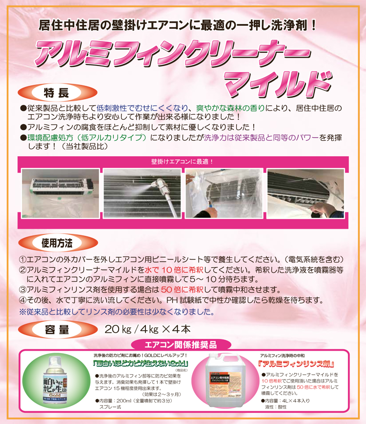 壁掛けエアコンに最適なアルミフィン専用洗浄剤