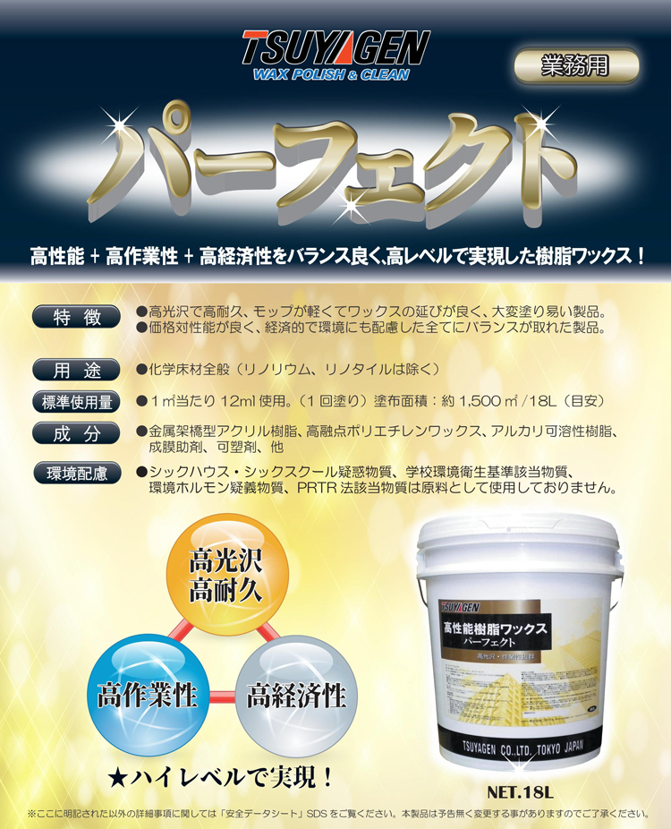 つやげん コストパフォーマンスを追及した樹脂ワックス パーフェクト 18L