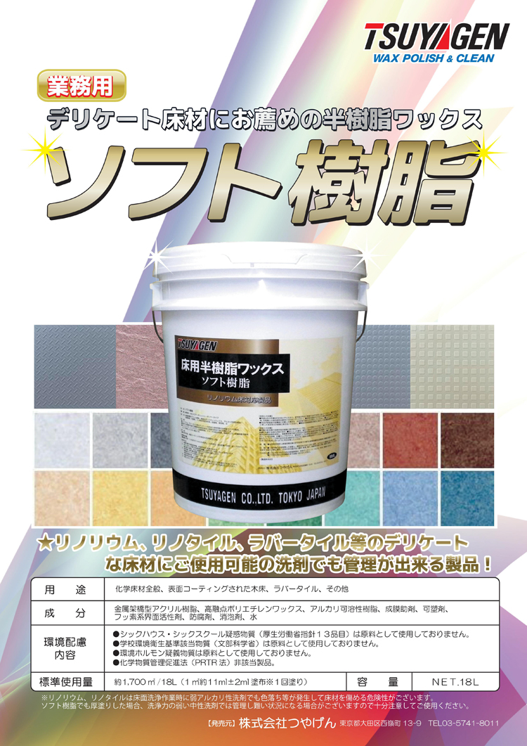 つやげん リノリウム ラバータイル用樹脂ワックス ソフト樹脂 18L