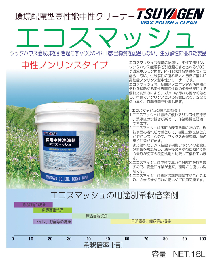 つやげん 中性環境配慮型洗浄剤 エコスマッシュ 18L