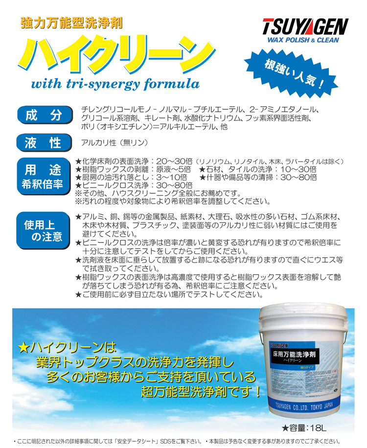 つやげん 高い洗浄力が自慢の万能洗剤! ハイクリーン 18L