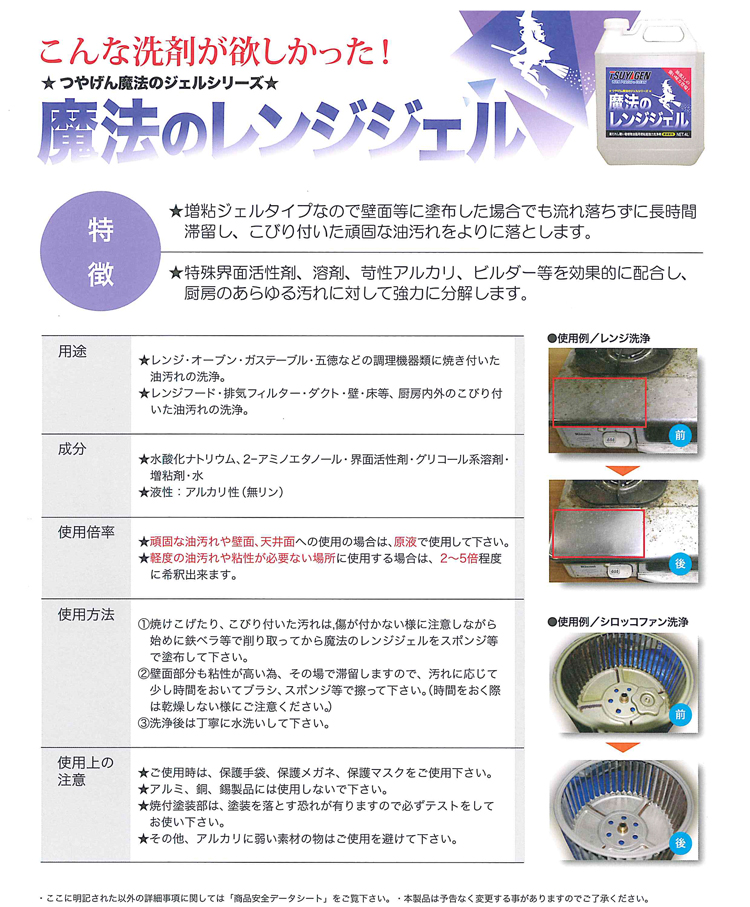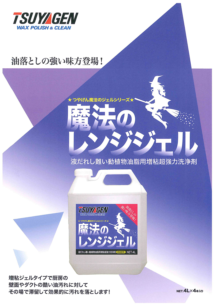 つやげん 液だれし難い動植物油脂用増粘超強力洗浄剤 魔法のレンジジェル 4L