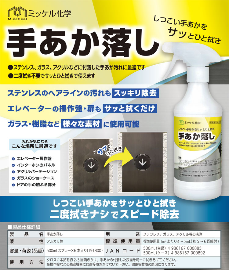 ミッケル化学 しつこい手あかをサッとひと拭き 手あか落とし 500ml
