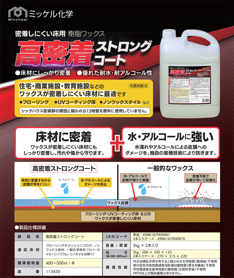 ミッケル化学 水・アルコールに強い高密着性ワックス 高密着ストロング 5kg