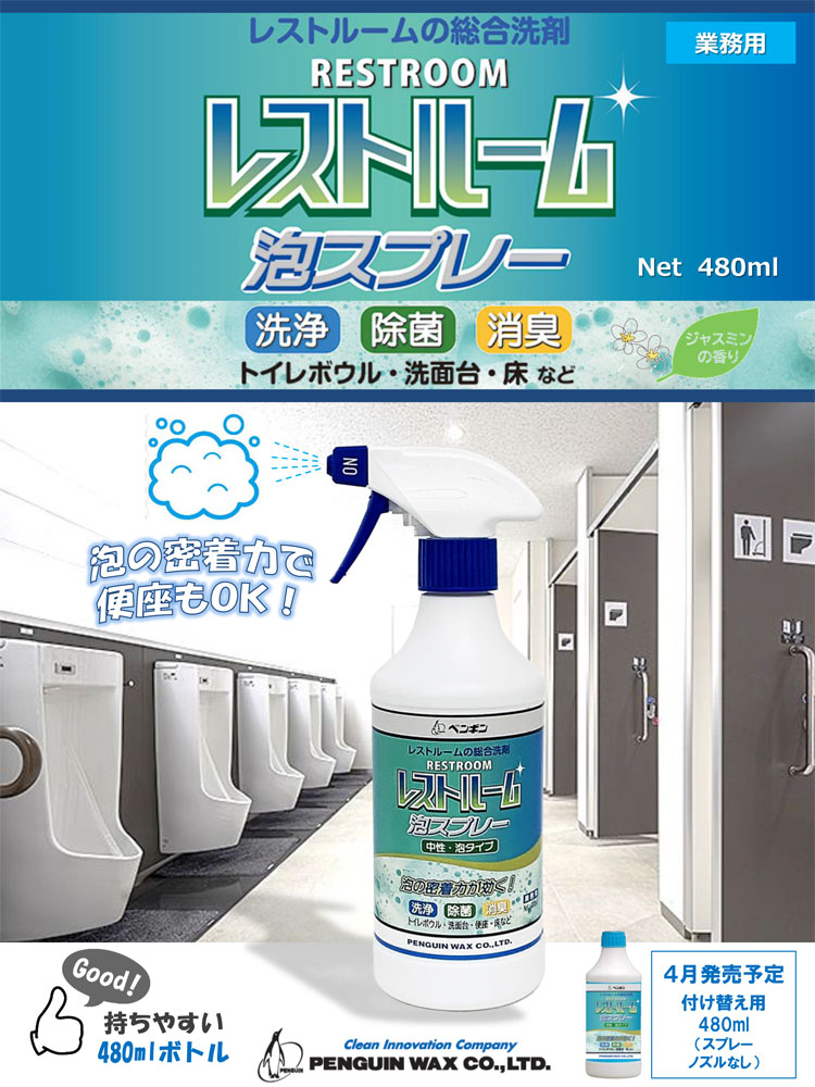 ペンギン 泡タイプ中性トイレルーム用洗剤 レストルーム泡スプレー 480ml