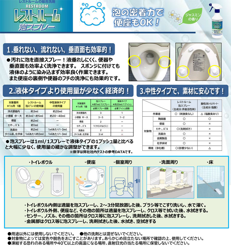 ●泡の密着力で、垂れない、流れない、便座や垂直面もOK!●泡タイプは液体タイプより使用量が少なく、大変経済的!