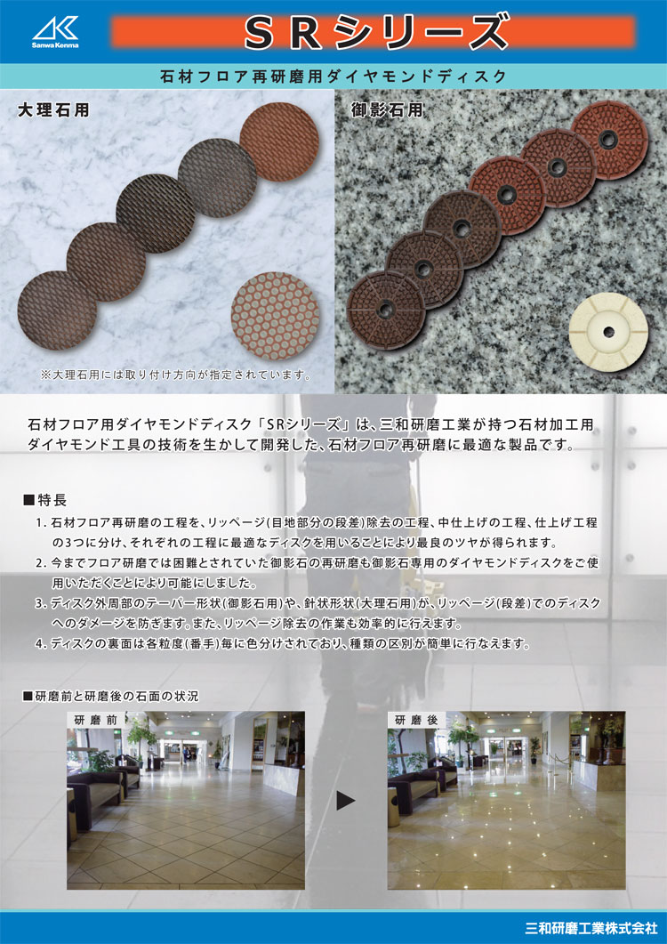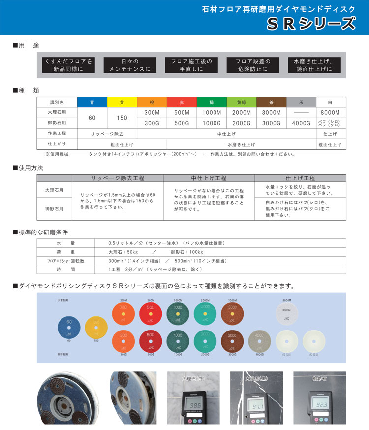 石材フロア用ダイヤモンドディスク「SRシリーズ」大理石用