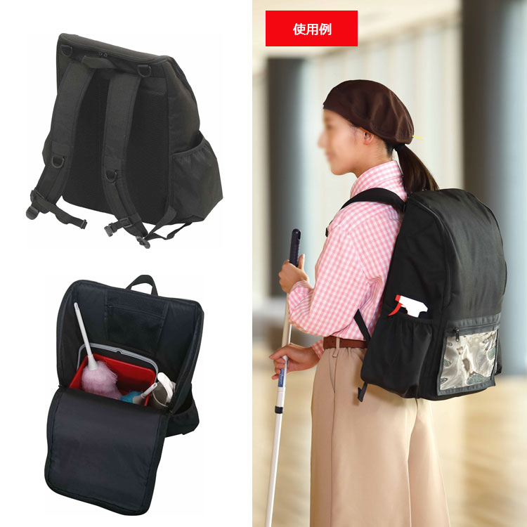 クッション性の高い背とショルダーベルトで、肩が痛くなりにくい本格的清掃用リュック