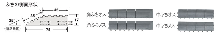 | 角ふちオス75×375mm 角ふちメス75×375mm 中ふちオス75×300mm 中ふちメス 75×300mm | 約17mm | 特殊ポリエチレン |