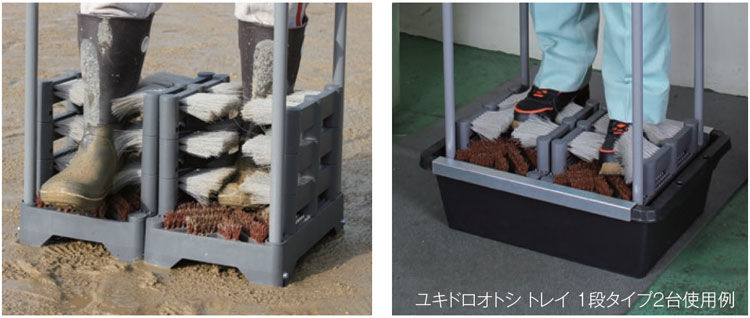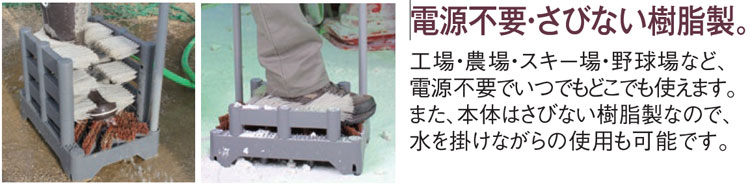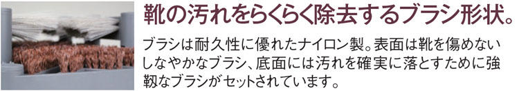 脚を前後に動かすだけで、靴の表や底についた雪・泥や作業現場などで付着したキリコを効果的に除去するシューズクリーナー