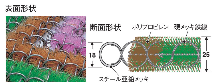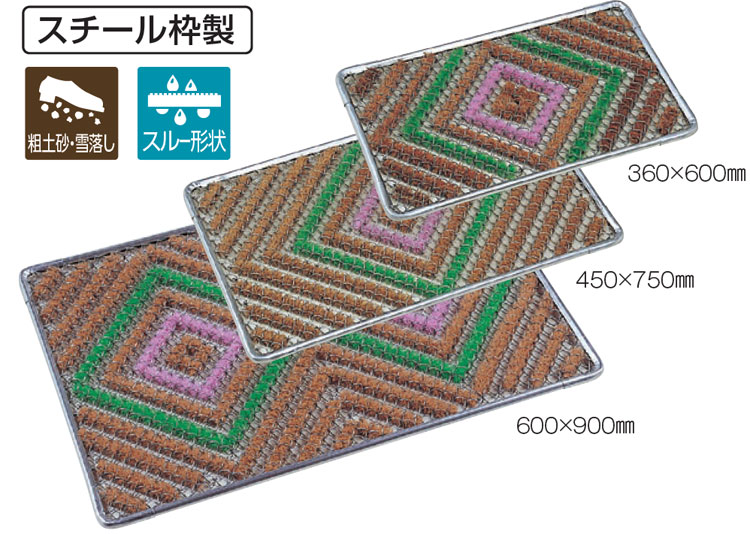 | 360×600mm 450×750mm 600×900mm | 約25mm | 360×600mm:約1.7kg 450×750mm:約2.5kg 600×900mm:約3.7kg | 硬亜鉛メッキ鉄線 ふち:スチール亜鉛メッキ 毛:ポリプロピレン |