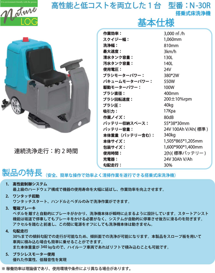 ネイチャーログ 自動床洗浄機 搭乗式床洗浄機N-30R