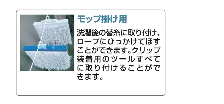洗濯後の替糸に取り付け、ロープにひっかけて干すことができます。クリップ装着用のツールすべてに取り付けることができます。