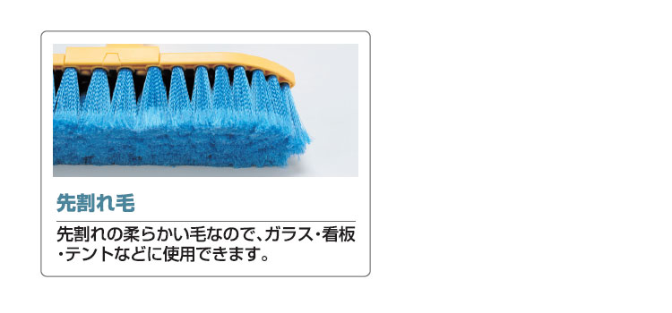 先割れの柔らかい毛なので、ガラス・看板・テントなどに使用できます。さしこみ装着対応です。
