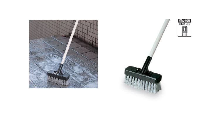 コンクリートやタイルの汚れ落としに。床洗いに最適です。軽くて使いやすいスチールパイプ柄。スペアは、SPデッキブラシWスペアをご使用下さい。
