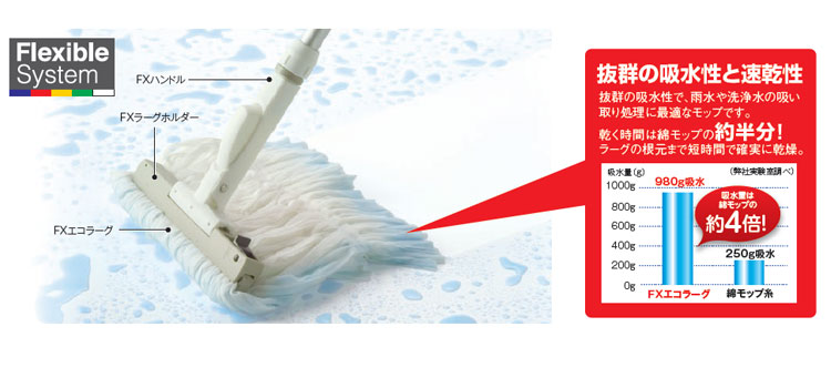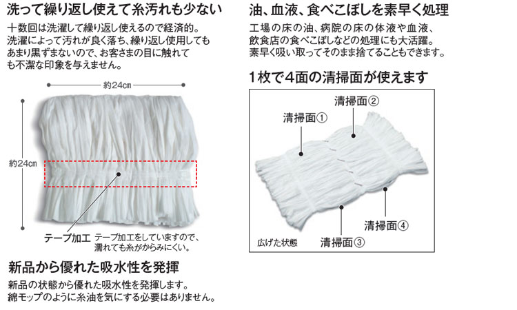 クリーンクルーの間で大好評の吸水・水拭き・吸油用モップ。