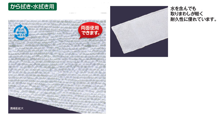 水拭き使用では、幅広雑巾として広範囲の水拭き作業に適しています。