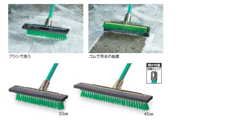| 33㎝ | 1380mm | 910g | 頭:スチールにクロメートメッキ、先ゴム:クロロプレンゴム、 毛:塩化ビニール、柄:φ25.4スチールパイプにポリエチレン接着被膜 | 約40mm | ||