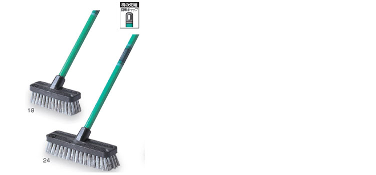 | 18 | 頭:ポリプロピレン、毛:ポリエステル(再生樹脂)、 柄:φ22.2スチールパイプにポリエチレン接着被膜 | 180mm | 1300mm | 約40mm | 約530g | |